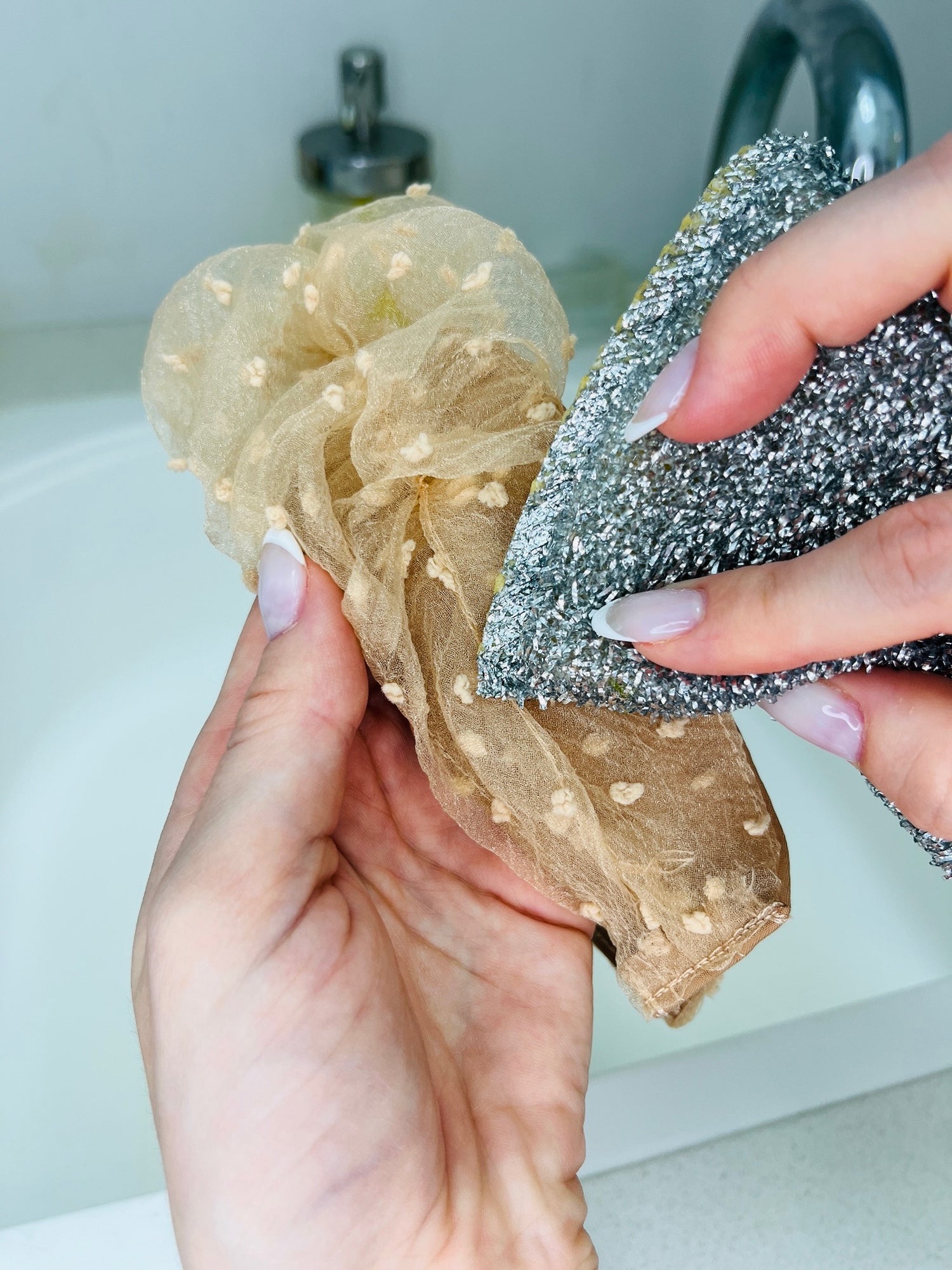 עם מעט מים וסבון כלים, ובעדינות ננקה את הכתם מהבד.